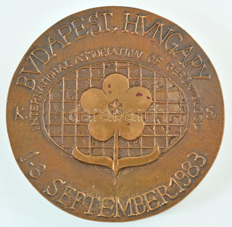 Kiss Sándor (1925-1999) 1983. "Nemzetközi Gerontológiai Társaság - Budapest 1983. szeptember 1-3. / Az európai biológiai és klinikai szekció első közös gyűlése" Br emlékérem (~97mm) T:1- Hungary 1983."International Association of Gerontology - Budapest, Hungary 1-3 September 1983. / 1st Joint meeting of the European Biological and Clinical Section" Br commemorative medal. Sign.: Sándor Kiss (~97mm) C:AU Cs. M. 1065.