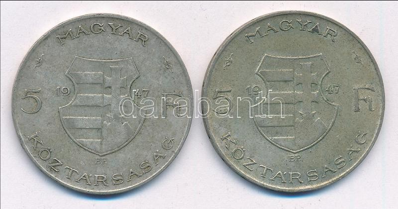 https://www.darabanth.com/en/420-Online-auction/420.0/Numismatics/Hungarian-coins-and-coins-with-Hungarian-mint-marks~2000008/1947-5Ft-Ag-Kossuth-2x-T2-3-patina-Adamo-F81~II2653694