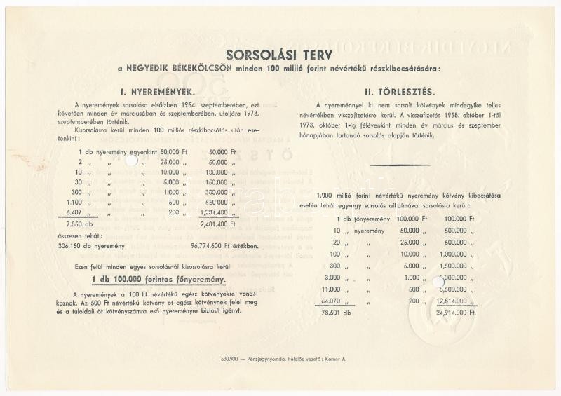 1953. "Negyedik Békekölcsön" nyereménykölcsön 500Ft-ról, szá... https://www.darabanth.com/en/420-Online-auction/420.0/Numismatics/Shares-and-Tickets~2000005/1953-Negyedik-Bekekolcson-nyeremenykolcson-500Ft-rol-szarazpecsettel-sorszam-nelkul~II2660140