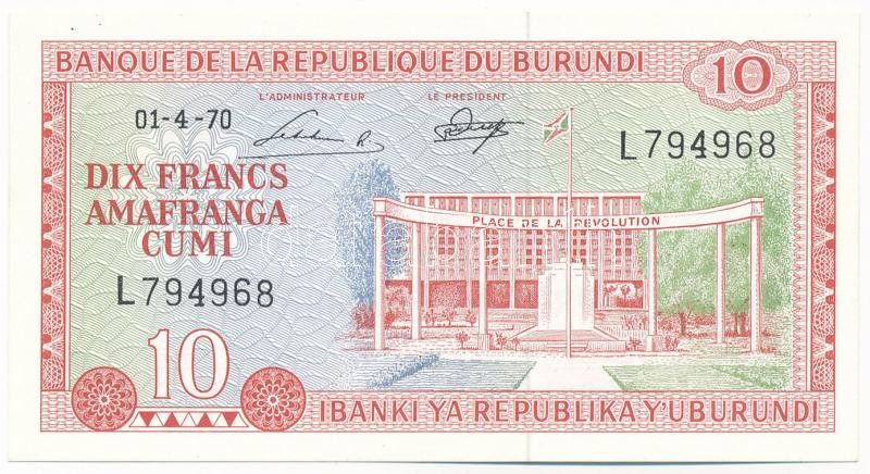 Burundi 1970. 10 Francs "L 794968" C:AU