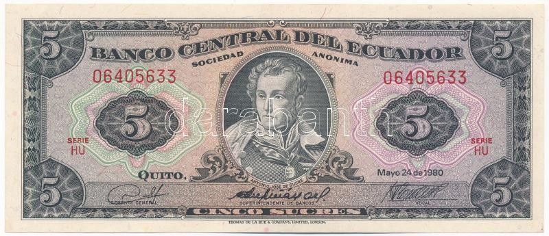 Ecuador 1980. 5 Sucres "HU 06405633" C:XF