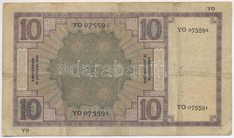 Netherlands 1931. 10 Gulden "YO 075591" C:F spot