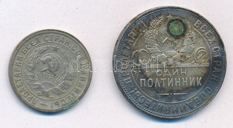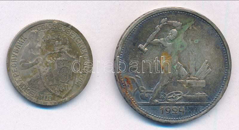 Szovjetunió 1924. 1P (50k) Ag + 1933. 15k Cu-Ni T:2,2- patina Soviet Union 1924. 1 Poltinnik (50 Kopecks) Ag + 1933. 15k Cu-Ni C:XF,VF patina Krause Y#89.1