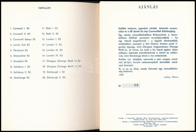 König Róbert: Cornwalltól Edinburghig 1987. Grafikai epigrammák. 20 db fametetszetet tartalmazó sorszámozott mappa (88 számú)