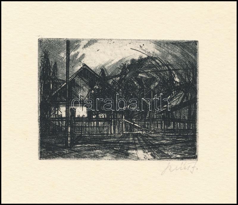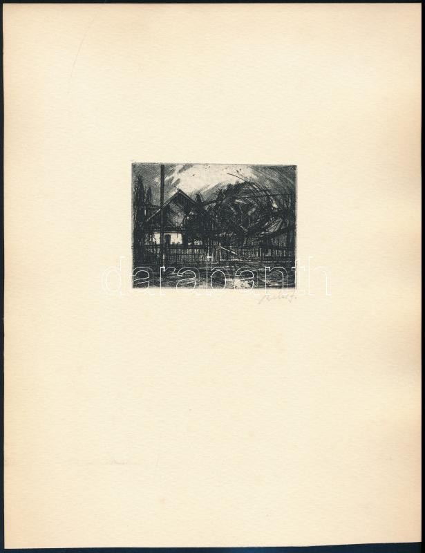 Szűcs János (1917-1995): Táj, 1966. Rézkarc, papír, jelzett, hátoldalá...
