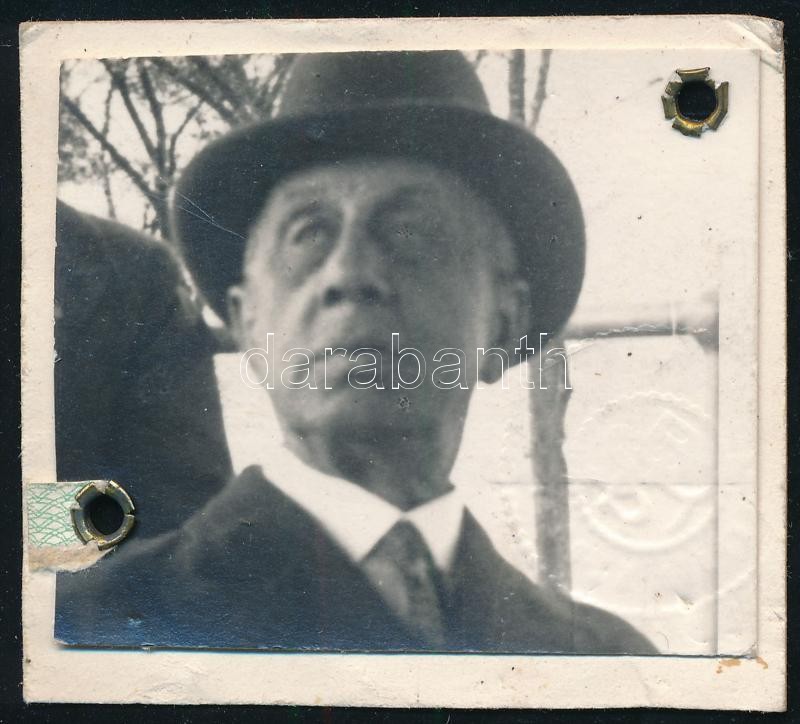 Gerő Ödön (1863-1939), a Pester Lloyd műkritikusának időskori portréja igazolványképként, hátoldala töredékes BSZKRT bérletjegy 1937. évre, 5,5x6 cm