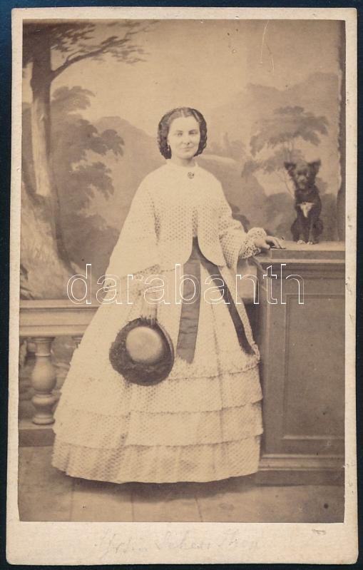 cca 1865 Grófnő kutyával, keményhátú fotó Vuagnat genfi műterméből, há...