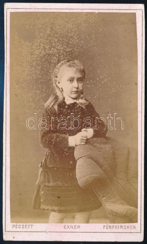 cca 1870 Kislány portréja, keményhátú fotó Exner pécsi műterméből, 10,...