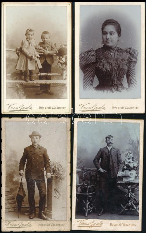 cca 1880-1900 Hódmezővásárhely, 4 db keményhátú portré Veress Gy. műterméből, 10,5×6,5 cm
