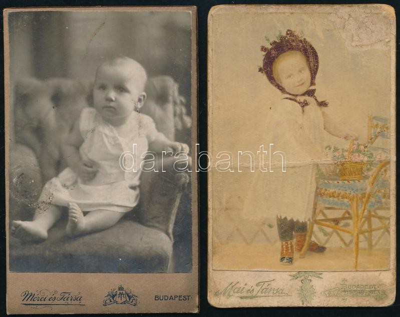 cca 1890-1910 Babafotók, 2 db keményhátú fotó Mai és Társa, ill. Mérei... https://www.darabanth.com/en/420-Online-auction/420.0/Photography/Photo~500021/cca-1890-1910-Babafotok-2-db-kemenyhatu-foto-Mai-es-Tarsa-ill-Merei-es-Tarsa-budapesti-~II2660248