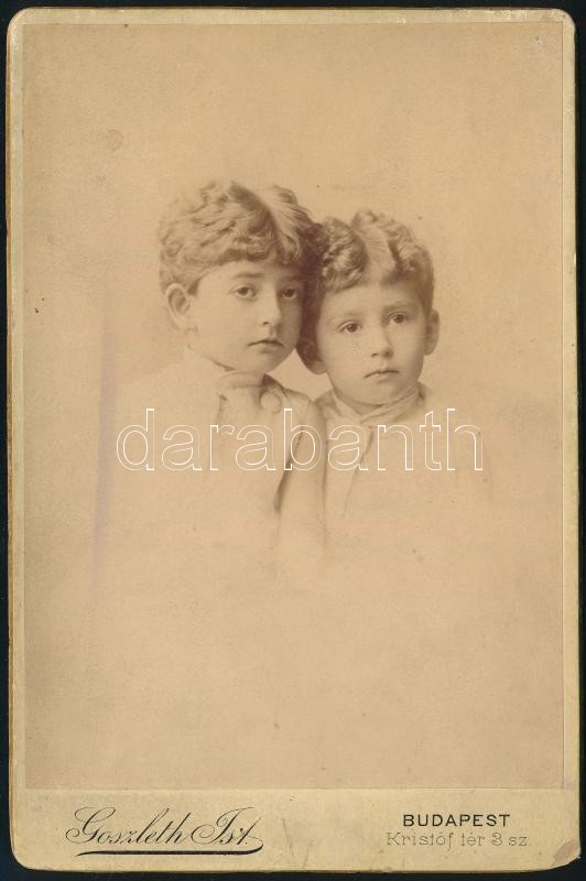 cca 1900 Fiú ikertestvérek portréja, Goszleth István műterméből, 15x10...