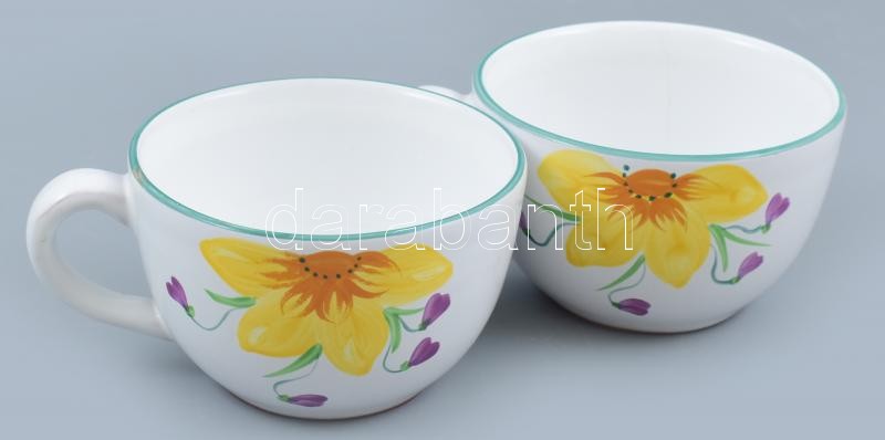 Herendi Village Pottery, majolika reggeliző készlet, kézzel festett ke...