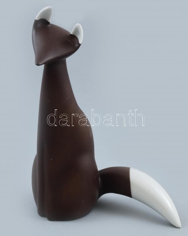 Royal Dux Retró róka, kézzel festett porcelán, jelzett, minimális kopásokkal, Terv: Jaroslav Jezek. 1960 körül m: 21 cm