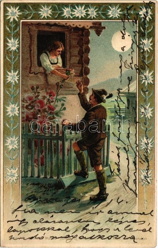 1901 "Unterm Monde" Kunstverlag Rafael Neuber Wien Serie 40. Floral, litho s: E. Döcker jun. (EK)