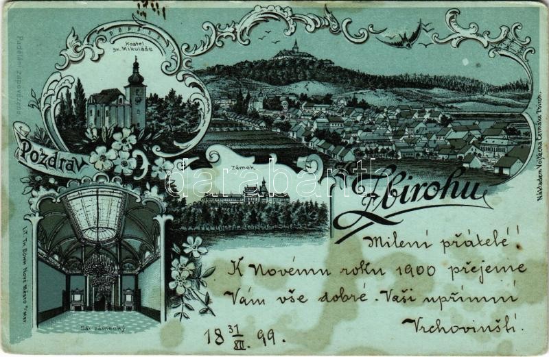 1899 (Vorläufer) Zbiroh, Kostel Sv. Mikulase, Zámek, Sál zámecky / church, castle, castle interior. Lit. Th. Böhm. Art Nouveau, floral, litho (fl)