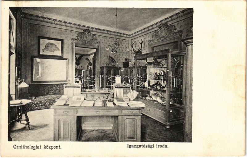 1907 Budapest II. Ornithológiai központ, Igazgatói iroda, belső (Madártani Intézet). Debrői út (ma Hermann Ottó út)