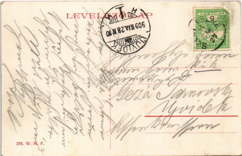 1909 Szentendre, Ferenc József rakpart, Hajókikötő, gőzhajó. W.M.F. 376.