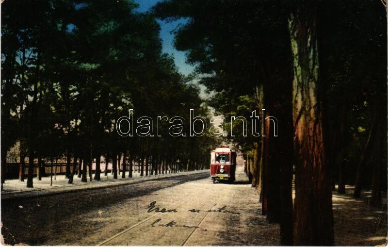 1917 Debrecen, Nagyerdői fasor, villamos (EK)