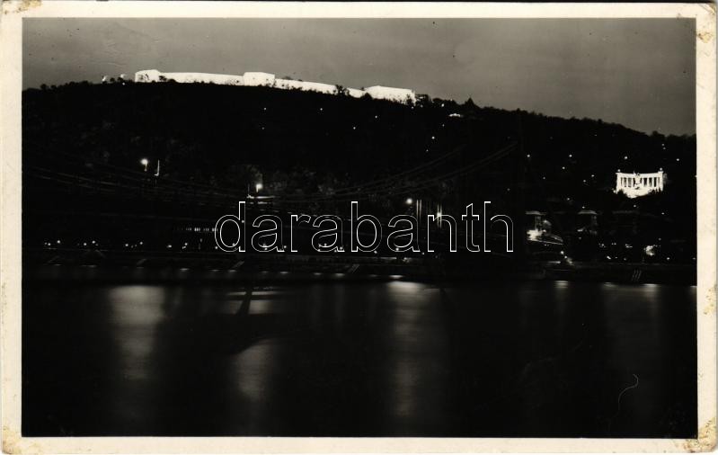 1937 Budapest XI. A kivilágított Citadella este, Erzsébet híd (fl)
