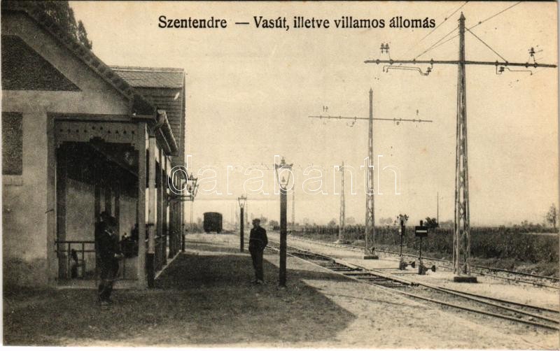 Szentendre, vasútállomás és villamos állomás. Özv. Goldstein Mórné kiadása
