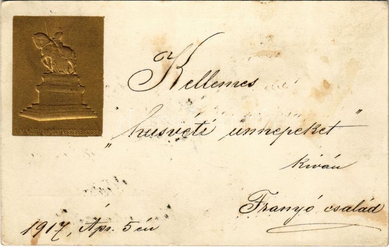 1917 Nemzeti Áldozatkészség Szobor segélylap, dombornyomott / WWI Austro-Hungarian K.u.K. military charity fund, golden Emb. (Rb)