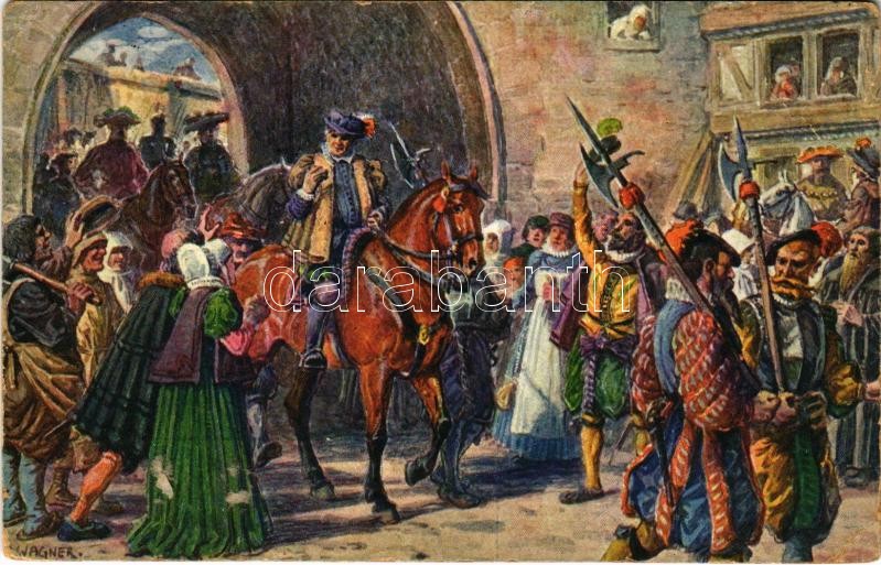 Description: Kassel, Cassel; Offizielle Festpostkarte der Tausendjahrfeier der Residenzstadt Cassel. September 1913. Im Jahre 1552. Landgraf Philipp der Großmütige, aus 5 jähriger Gefangenschaft zurückkehrend, wird am 12. September 1552 am Zwehrener Tore in Cassel von der Bürgerschaft jubelnd empfangen s: Wagner (EB)