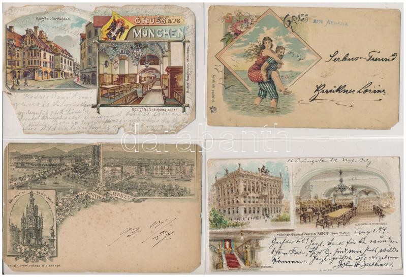 17 db RÉGI hosszú címzéses külföldi litho képeslap vegyes minőségben / 17 pre-1900 European Art Nouveau, litho postcards in mixed quality