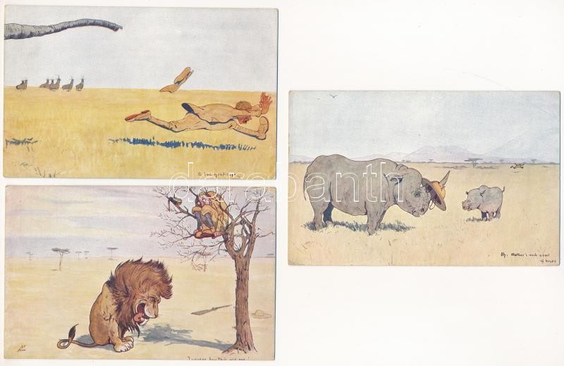 3 db régi humoros képeslap állatokkal, Pick szignóval / 3 pre-1945 humorous postcards with animals (B.K.W.I. 954-1/8/12)