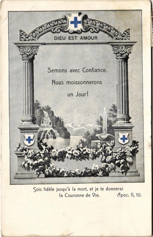 Description: 1914 Dieu est Amour. Semons avec Confiance nous moissonnerons un Jour! Sois fidele jusqu'a la mort, et je te donnerai la Couronne de Vie. Apoc. II. 10. (EB)