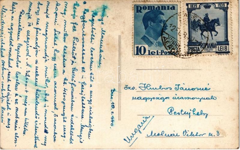 1940 Bucharest, Bukarest, Bucuresti, Bucuresci; Bd. Bratianu, Creditul Minier, Mercedes-Benz, Foto Bucegi, Motociclete Biciclete / street view, tram, shops, automobiles. photo