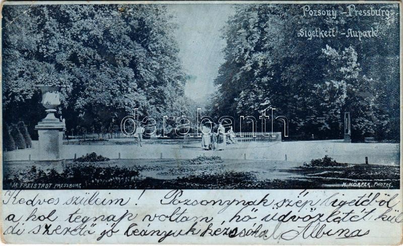 1899 (Vorläufer) Pozsony, Pressburg, Bratislava; Ligetkert. M. Freistadt kiadása. K. Körper Photog. / Aupark / park (Rb)