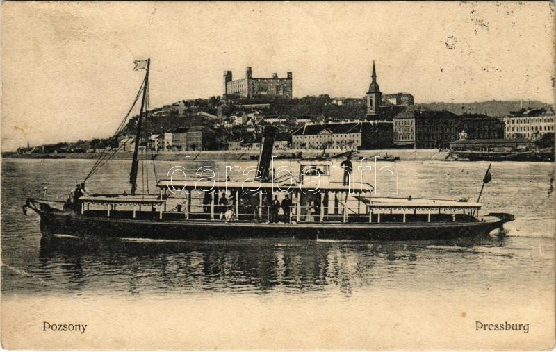 1906 Pozsony, Pressburg, Bratislava; vár és dunai ingahajó. Bediene di...