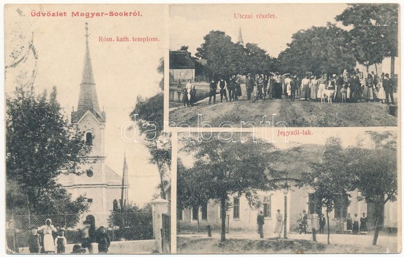 1907 Magyarsók, Sok (Szelőce, Selice); Római katolikus templom, utca, ...