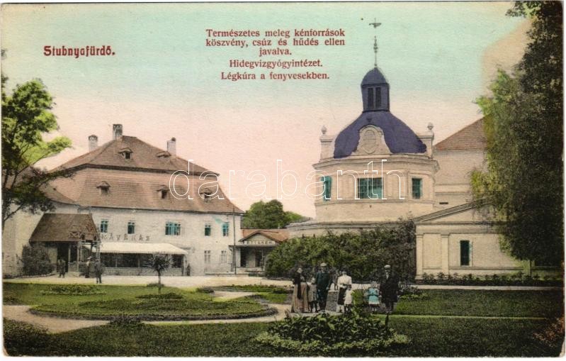 1907 Stubnyafürdő, Túróchévíz, Stubnianske Teplice, Turcianske Teplice; Gyógyudvar, kávéház és étterem / spa, café and restaurant (fl)