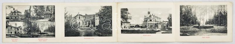 Stubnyafürdő, Túróchévíz, Stubnianske Teplice, Turcianske Teplice; Zöld tükör, Stefánia forrás, Jeszenszky villa, Fürdő udvar, park. részes kihajtható leporello (nem képeslap hátoldalú) / spa. 4-tiled non PC leporello