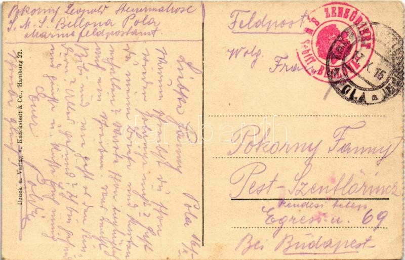 1915 Kreuzer "Emden" / WWI German Navy (Kaiserliche Marine), SMS Emden Dresden class light cruiser + "SM SCHIFF BELLONA ZENSURIERT" (EK)