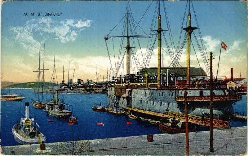 1915 Pola, Pula; SMS Bellona az Osztrák-Magyar Haditengerészet uszály ... https://www.darabanth.com/en/420-Online-auction/420.0/Postcards/Warships~1000026/1915-Pola-Pula-SMS-Bellona-az-Osztrak-Magyar-Haditengereszet-uszaly-laktanyaja-a-matrozoknak-~II2665710