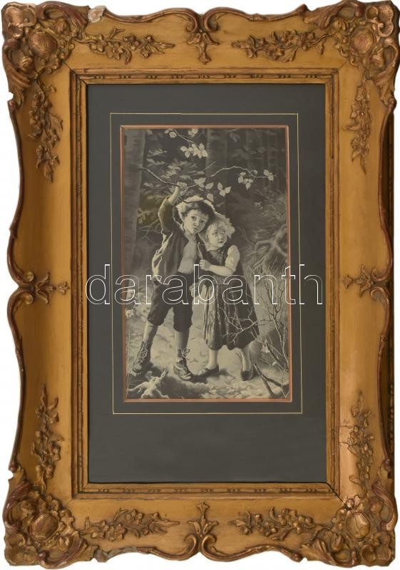 Dekoratív üvegezett, kissé sérült fakeret szövetképpel, látható méret:...
