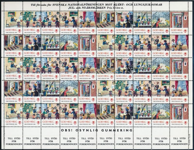 Svédország 1988 Karácsony és újév 50-es hajtott levélzáró ív