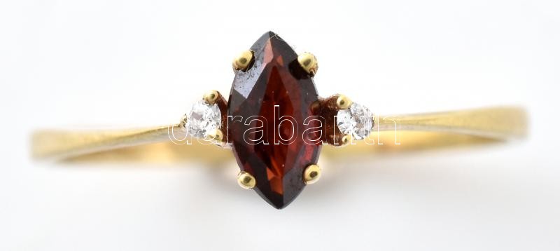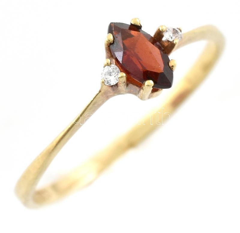 8K arany (Au) gyűrű gránátkővel. Jelzett, bruttó: 1 g, méret: 54, dobo...