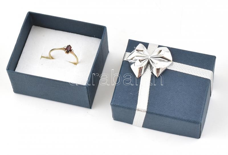 8K arany (Au) gyűrű gránátkővel. Jelzett, bruttó: 1 g, méret: 54, dobozban
