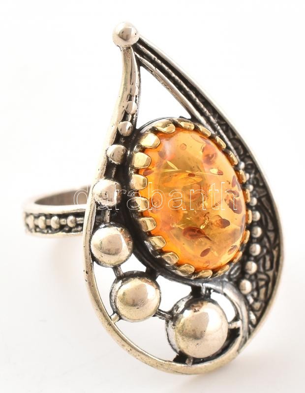 Ezüst(Ag) gyűrű borostyánnal, jelzett, méret: 58, bruttó: 8,15 g