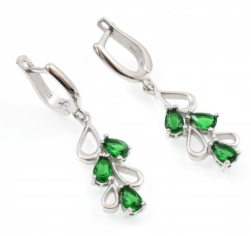 Ezüst(Ag) zöld kövekkel díszített fülbevalópár, jelzett, h: 4,5 cm, bruttó: 6,17 g
