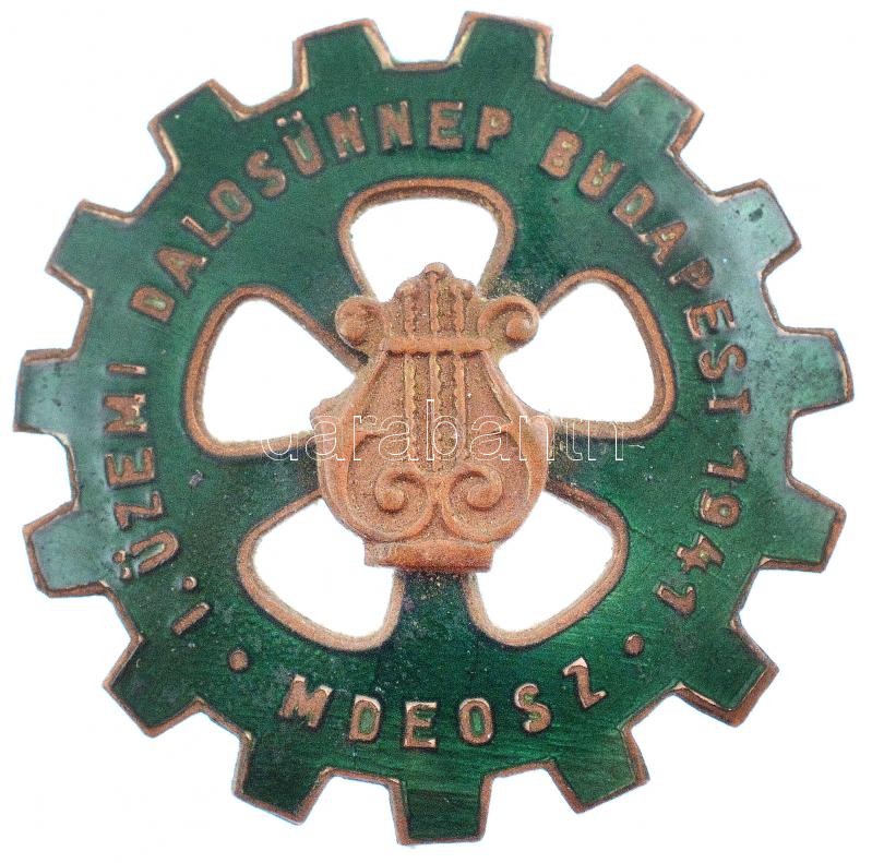 1941. "I. Üzemi Dalosünnep Budapest 1941 - MDEOSZ" zománcozott bronz jelvény, "BOCZÁN KÁROLY BUDAPEST CSOKONAI U" gyártói jelzéssel (29mm) T:1-