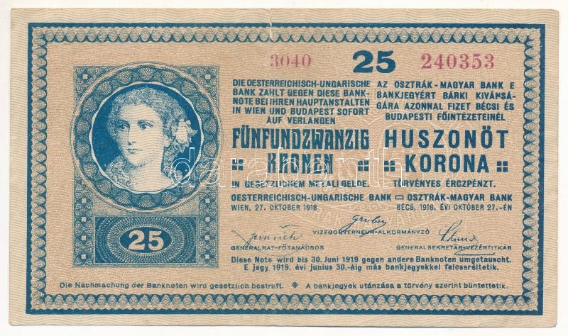 https://www.darabanth.com/en/421-Online-auction/421.0/Numismatics/Hungarian-Banknotes~3000007/1918-25K-3040-3mm-hullamos-hatlappal-TIII-hajtas-menten-szakadas-Adamo-K223~II2677545