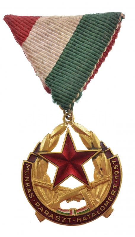 1957. "Munkás-Paraszt Hatalomért Emlékérem" aranyozott, zománcozott bronz kitüntetés mellszalagon T:1-