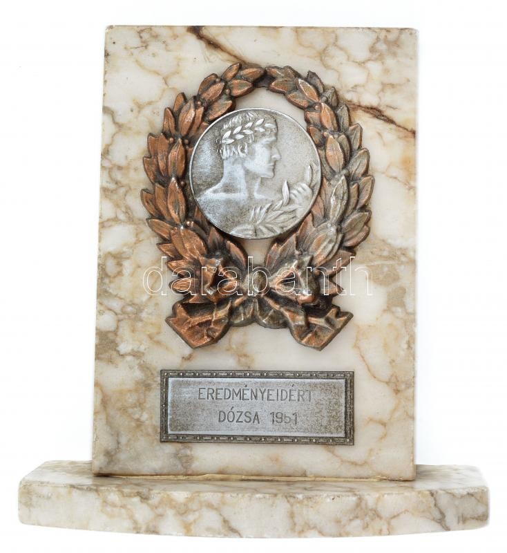 1951. "Eredményeidért - Dózsa 1951" fém díjérem álló márványtalapzaton...