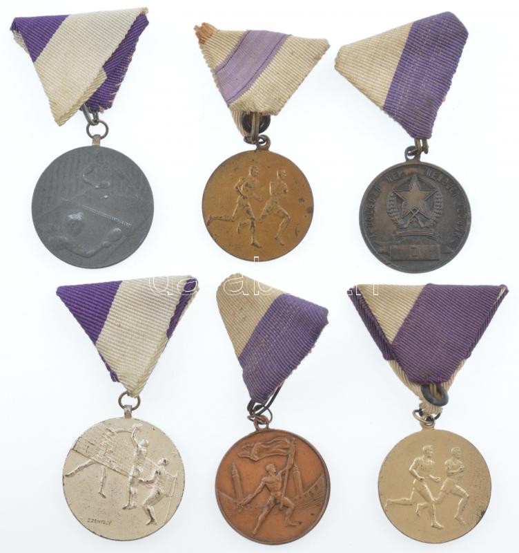 6xklf sport díjérem, ebből 3db "Újpesti Dózsa" címerrel, mindegyik lila-fehér mellszalagon T:2-3