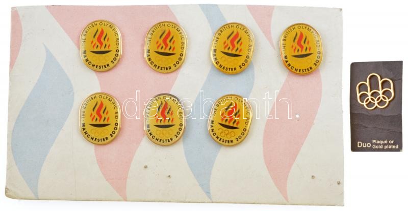 Description: Nagy-Britannia ~1993. "Brit Olimpiai Pályázat - Manchester 2000." műgyantás fém jelvény (7db) + aranyozott olimpiai jelvény T:1,1-