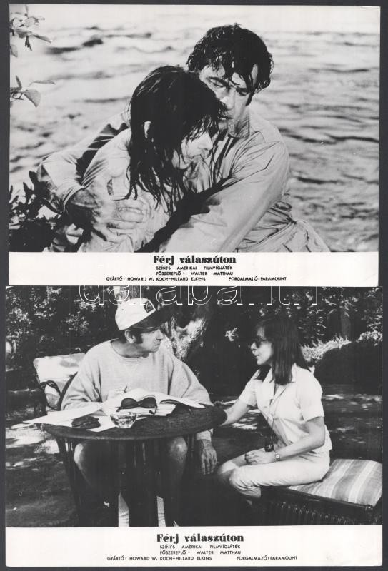 Description: cca 1971 ,,Férj válaszúton" című amerikai film jelenetei és szereplői (köztük Walter Matthau), 11 db vintage produkciós filmfotó, ezüst zselatinos fotópapíron, a használatból eredő kisebb hibákkal, 18x24 cm